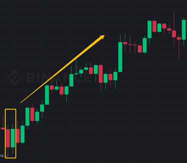 This means a reversal pattern that the entire green candle body fully engulfs the previous candle. It shows that selling was exhausted and the buyers joined in, causing a trend reversal.