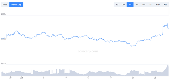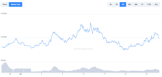 As you can see, this coin's market cap is pretty stable for one month. Now compare with another coin.